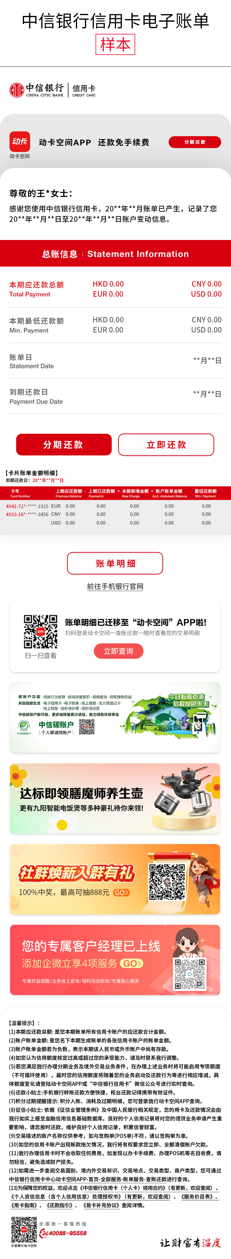 按照您在我行登记的电子邮箱地址,在账单日后次日起向您电子邮箱发送账单信息。